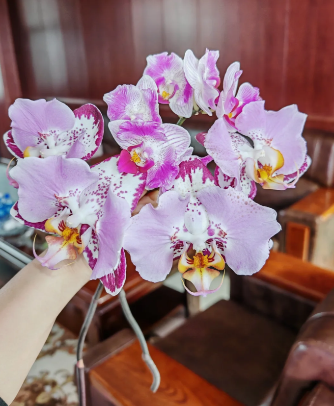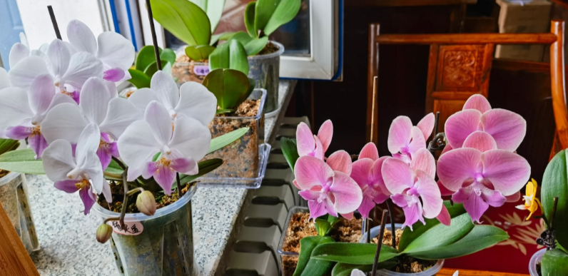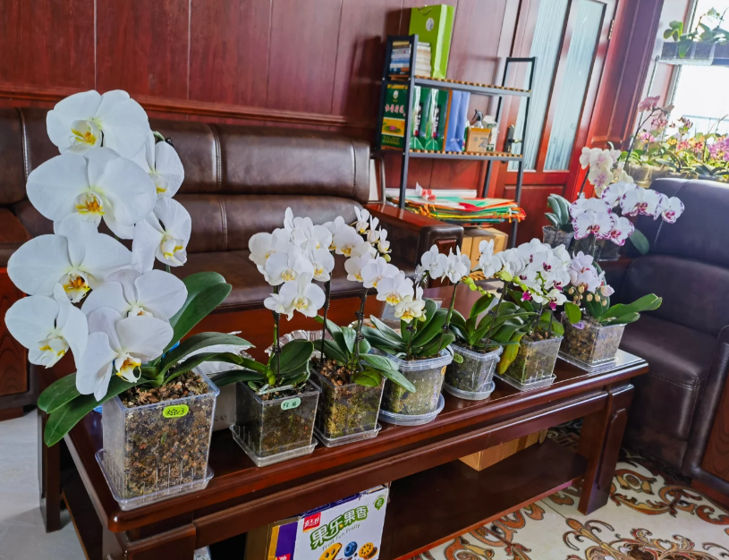 她不仅收集了各个品种的蝴蝶兰,而且光客厅里就种植了100多盆的蝴蝶兰,简直疯魔了!