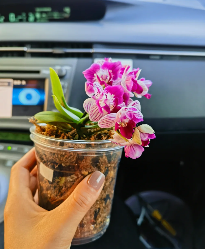 是的,她虽然痴迷于种植蝴蝶兰,但受到经济条件的限制,种植的数量越来越多,所以很多时候不得不使用一些“非常手段”来解决种植需要使用到的花盆、土壤等等问题。