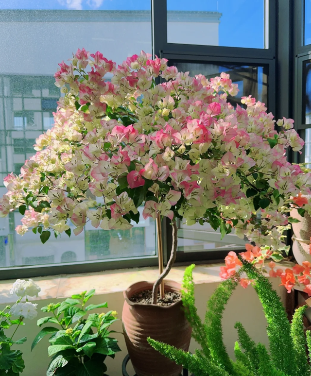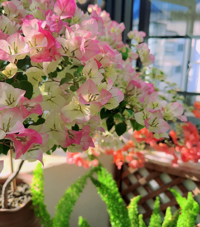 一般种植三角梅之所以出现光长叶子不开花的现象,是因为土壤盐碱化严重,我们需要长时间保持土壤的ph在5.5~6.5之间,同时要在花芽分化的时候及时的控水,让它多晒太阳,这样三角梅才能够轻松开爆花!
