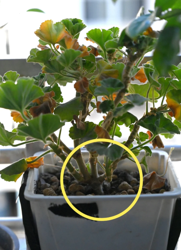 移除碱化的旧土,换上新的、肥沃的微酸性土壤,为天竺葵提供一个更适宜的生长环境。