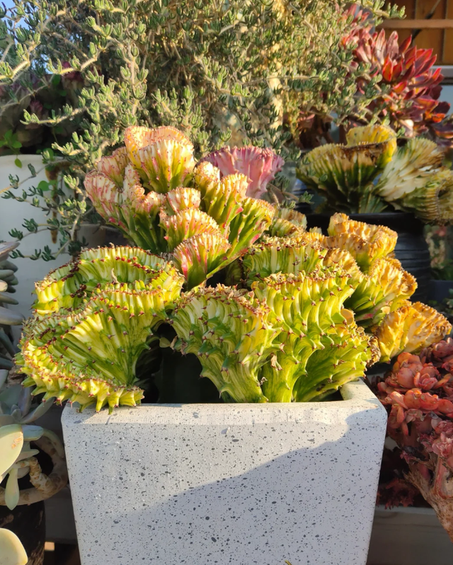 确实,在我国的大部分地区受到季节气候环境的影响,养殖出的多肉植物多以小巧、呆萌可爱为主,而像他这样一大坨一大坨的确实少见!