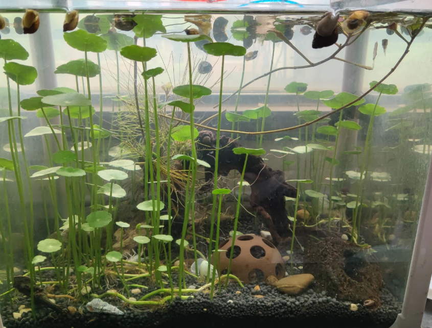 所以间隔十天半个月左右我们就需要换水一次,在换水的期间单独的清洗容器以及水草、铜钱草!并且在换水的过程中尽可能的减少环境变化对小金鱼造成的负面影响。
