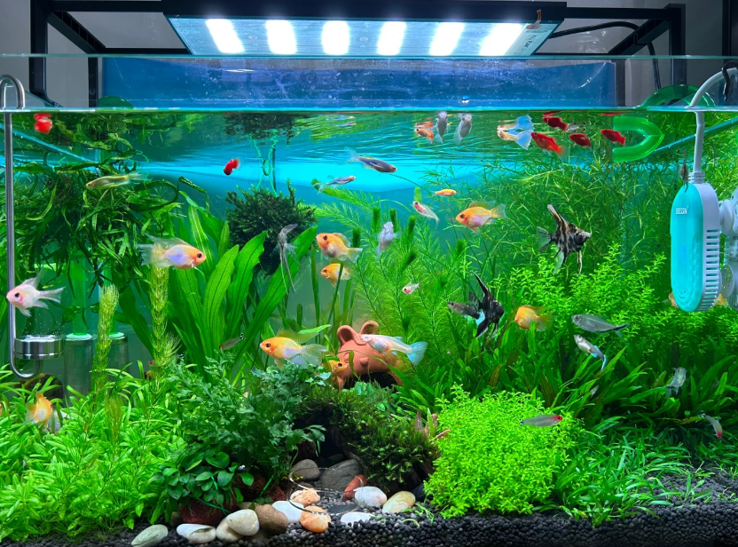 比如提前准备一个容器盛放玻璃缸里边的旧水和小金鱼,之后给植物和玻璃缸换好水之后,我们就把容器连带着水和鱼放在原先的玻璃缸里面,等到两者温度差不多的时候再把鱼放生到换了水的玻璃缸内!