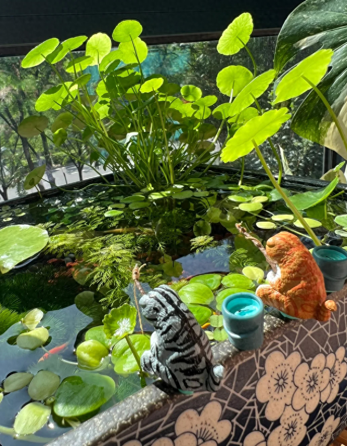 不过也需要注意放在适合的环境中,这样铜钱草和水草的叶子才会长得更加翠绿有光泽!