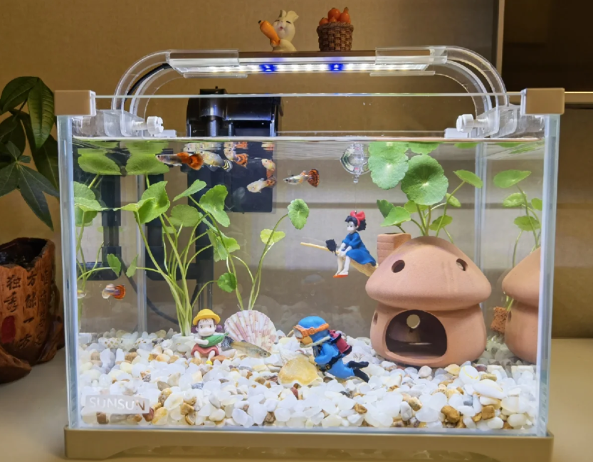 落入水中的鱼饵以及与排泄出的粪便都可以作为植物生长的养分,所以我们在水培铜钱草,水草以及鱼的过程中就不需要另外的施肥,只需要做到上面的两个关键点就够了。