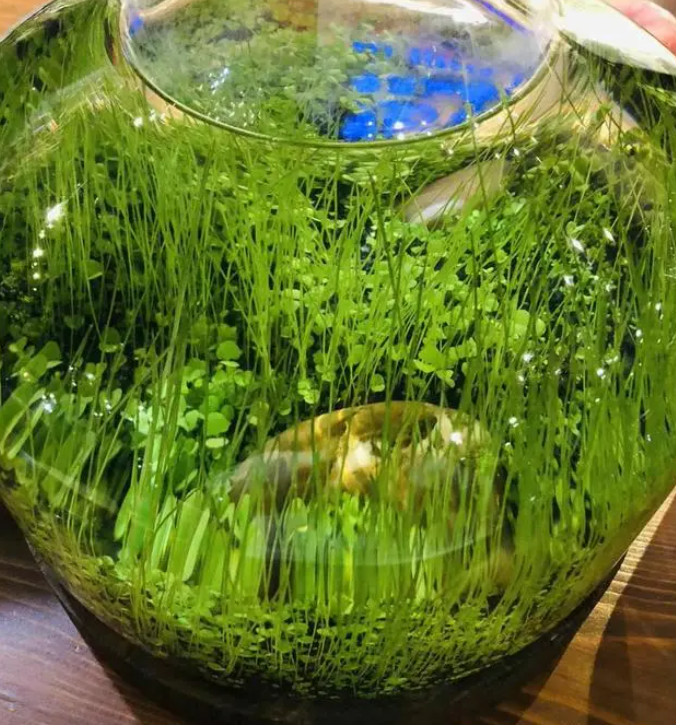 无数人的跟风却从来没有超越过,因为这个太太在鱼缸里种植的铜钱草,就像水草一样在水中舞动,让人完全的沉浸在这份自然的美好中,不知不觉之间就忘记了城市喧嚣和生活带来的压力。