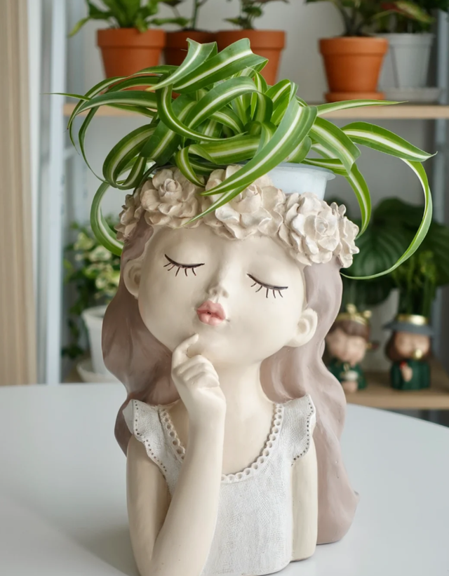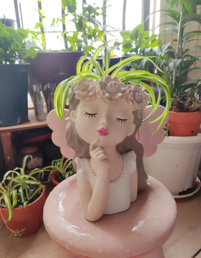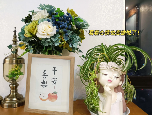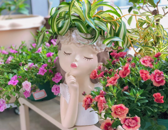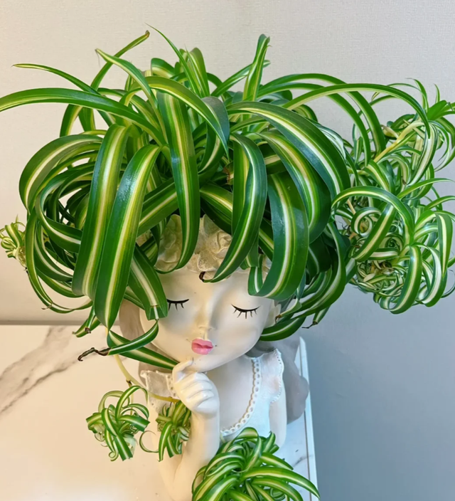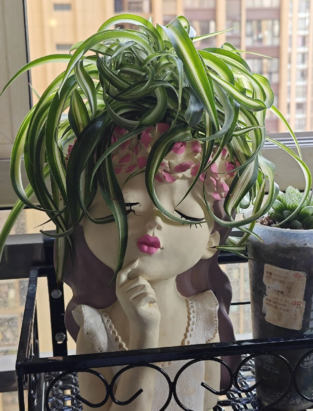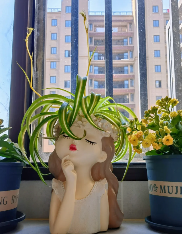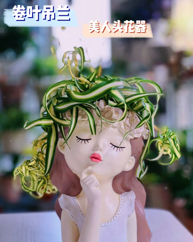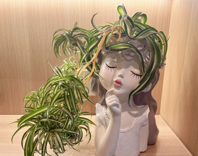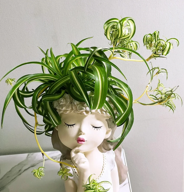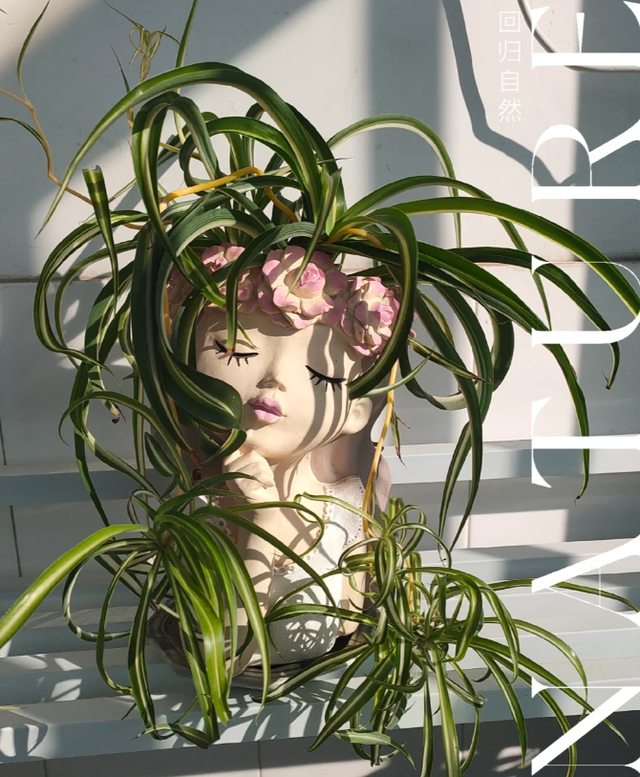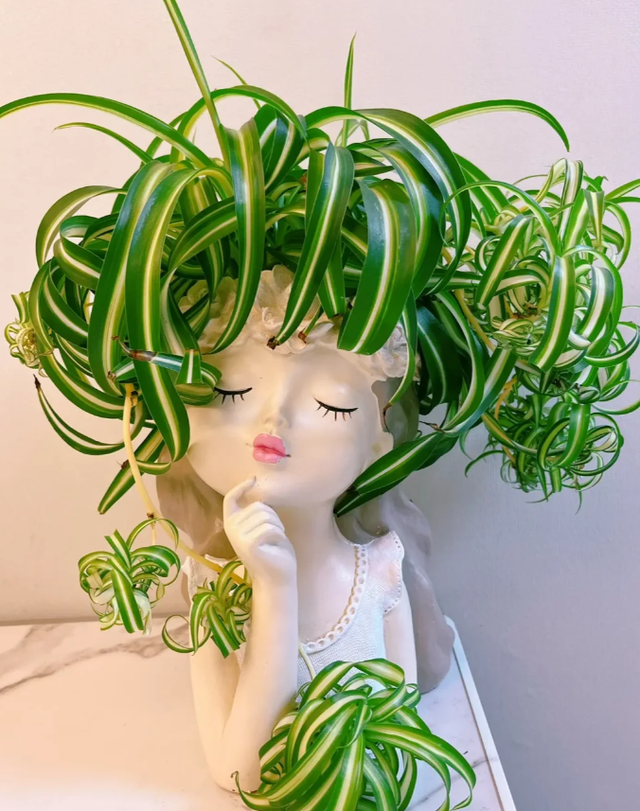 选择造型和纹理具有艺术性,做工精细的仙女陶盆,这样种植上卷叶吊兰,等到吊兰长到一定密度的情况下,在仙女陶盆的背景衬托下,整体结构就会变得如同小姐姐的这般完美,让人看一眼就感觉温暖和舒适!