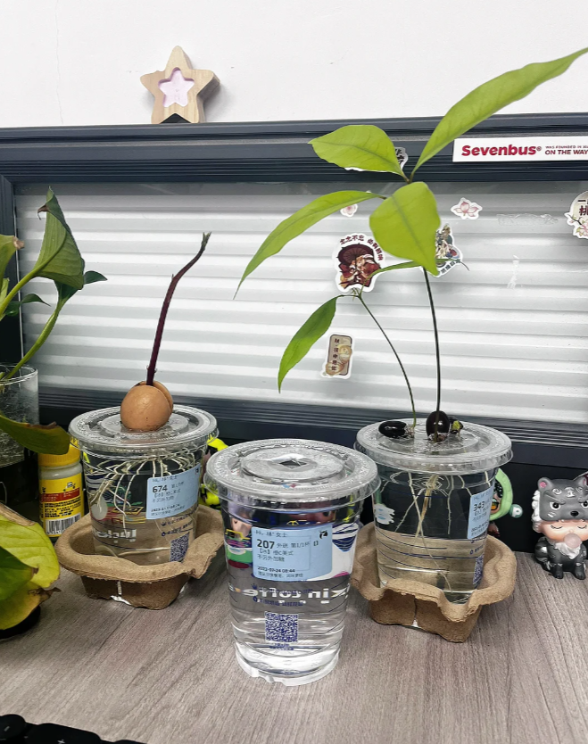 我们可以利用饮料瓶、奶茶杯或废弃的小杯子作为容器水培荔枝核。