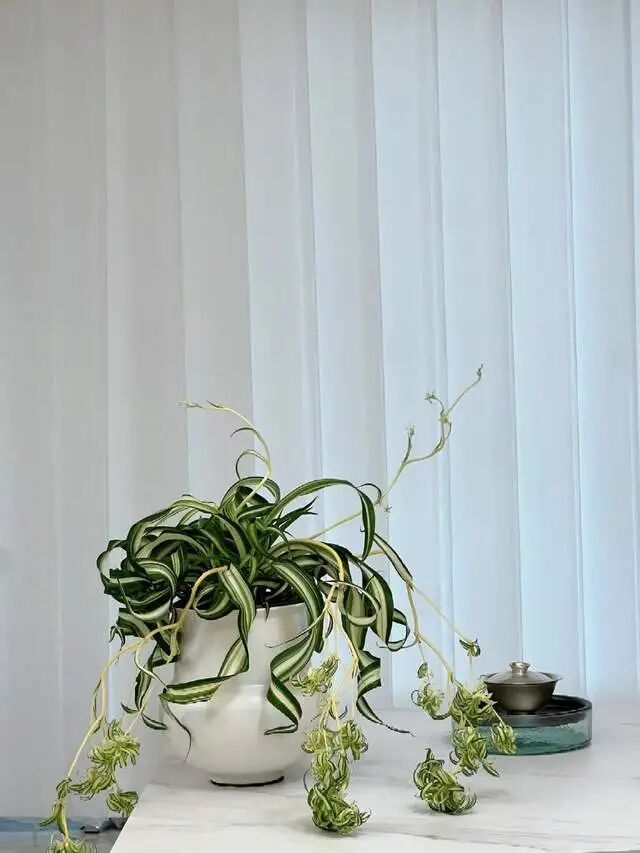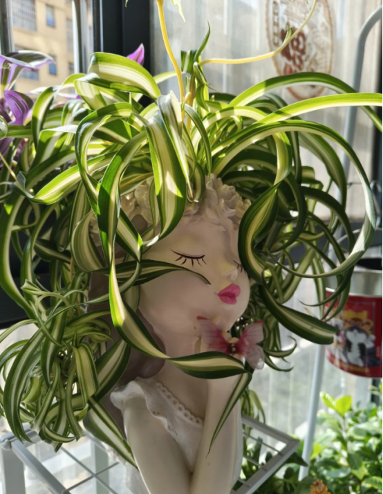 就像本文所要介绍的主人公那样,本来只是几盆普普通通的金边吊兰,却因为他的爱护和精心照顾,长得非常茂盛,再加上适当的修剪和引导,下垂的枝条,让人觉得“仙女不过如是!”。