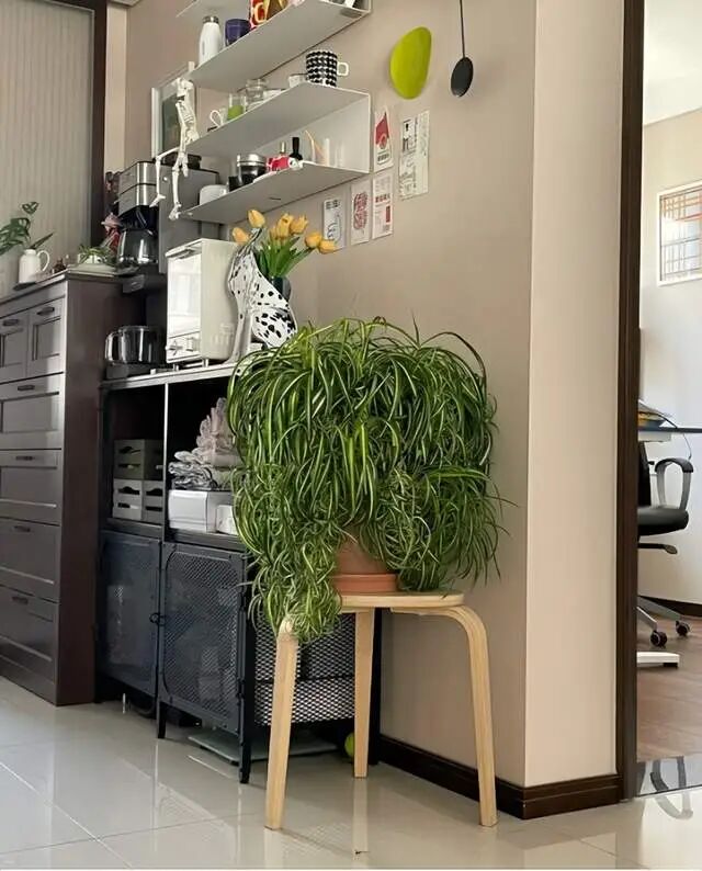 除了夏季环境温度持续超过35℃的情况下,再让金边吊兰避开太阳直射,其余时间就尽可能让金边吊兰生长在光照充足的地方,毕竟爆盆的吊兰都是“晒”出来的!