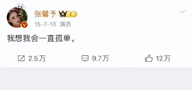 第一次知道有张馨予这样一个明星,是因为她说“我想我会一直孤单下去!”