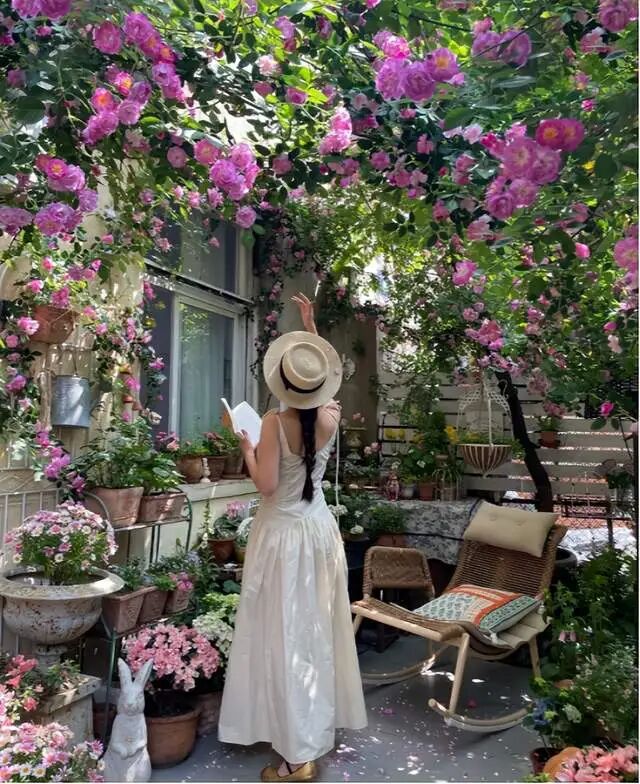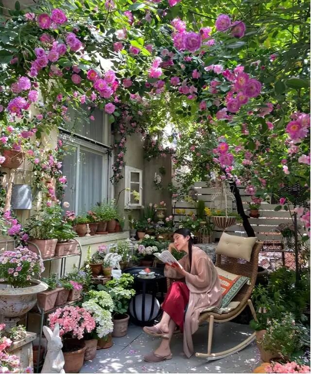 尤其是在炎热的夏季,坐在花荫下的摇椅上,静静的看书,静静的赏花,简直美如画卷。