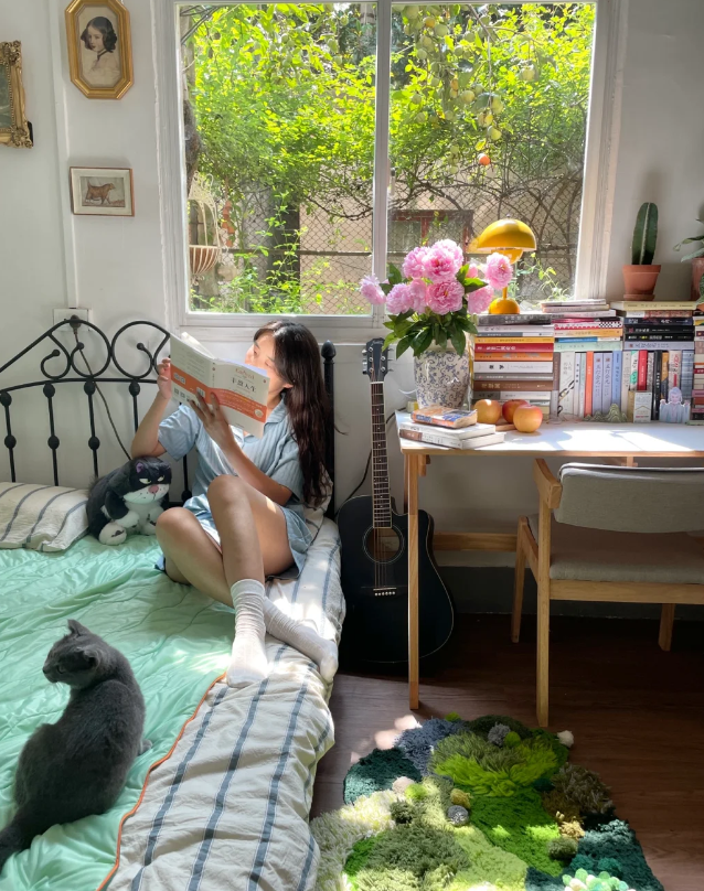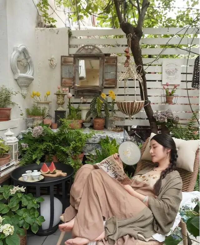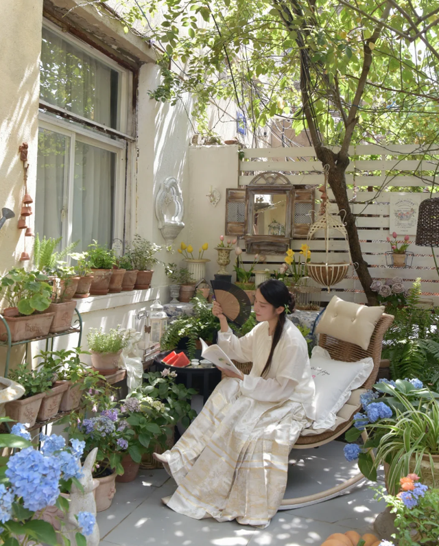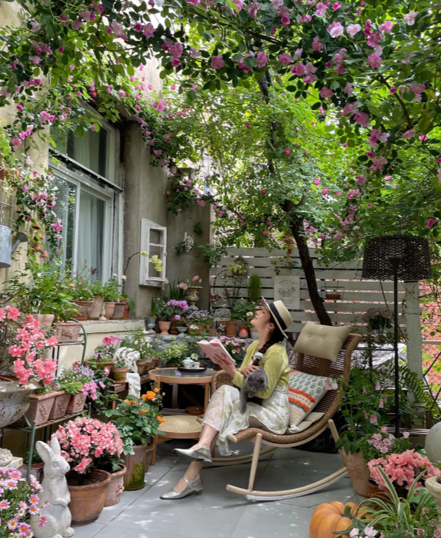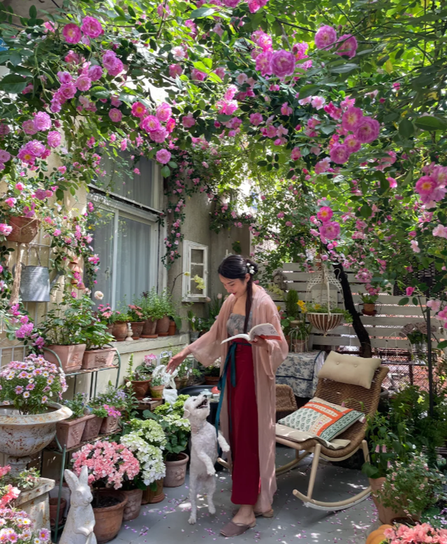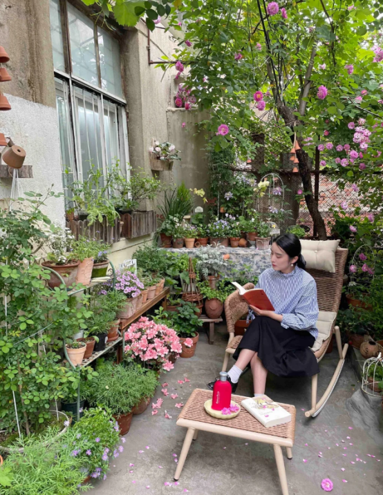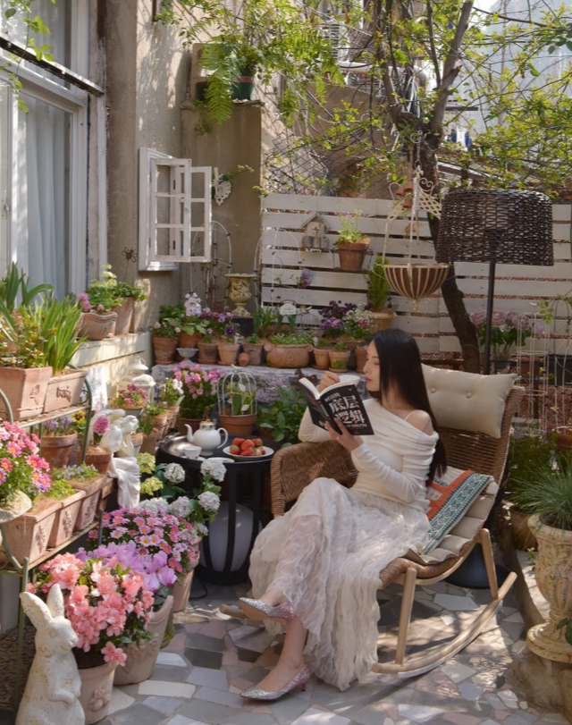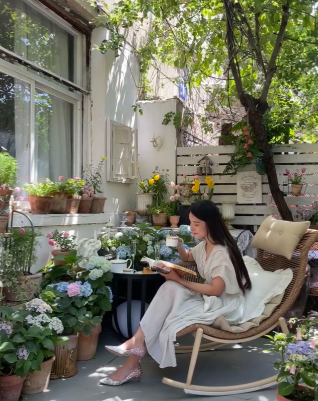 凭借着做美妆攒下的积蓄,回到老家买下一楼破旧的院子,过起了自己喜欢的生活,养花逗狗看书……