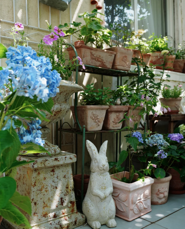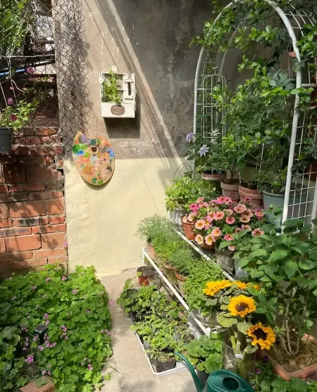 “巴掌大”的院落被种植上了各种各样的花草盆栽,