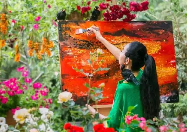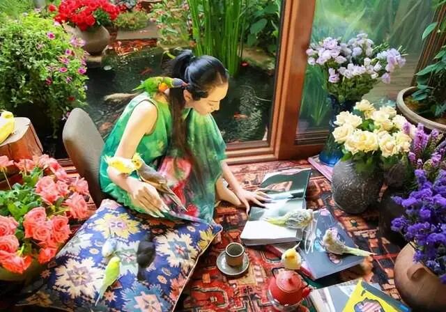 不仅是动物,杨丽萍老师还非常喜欢各种各样的植物,在她的院子里随处可见各种各样的绿植和花卉、和水、鸟。