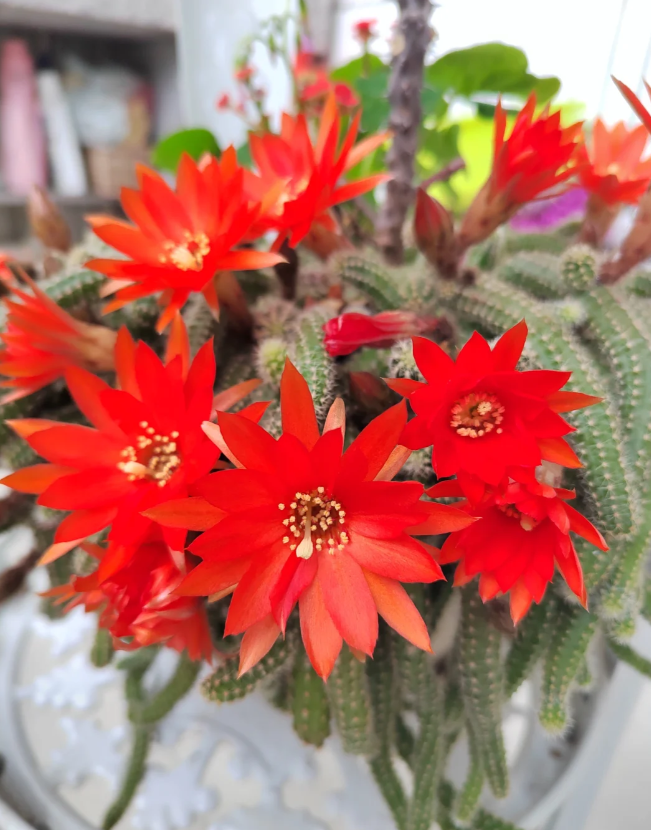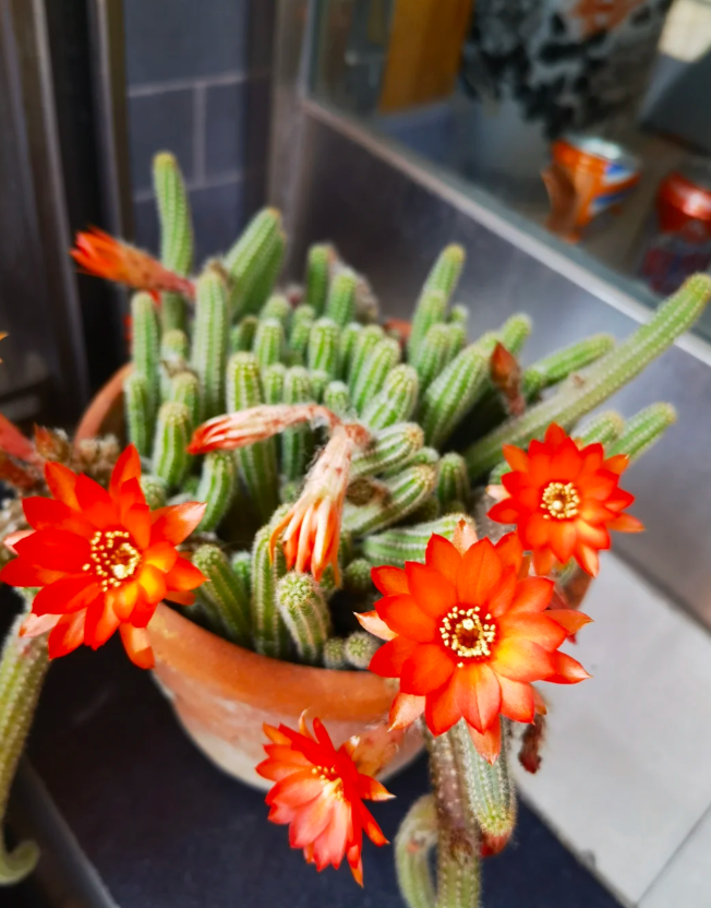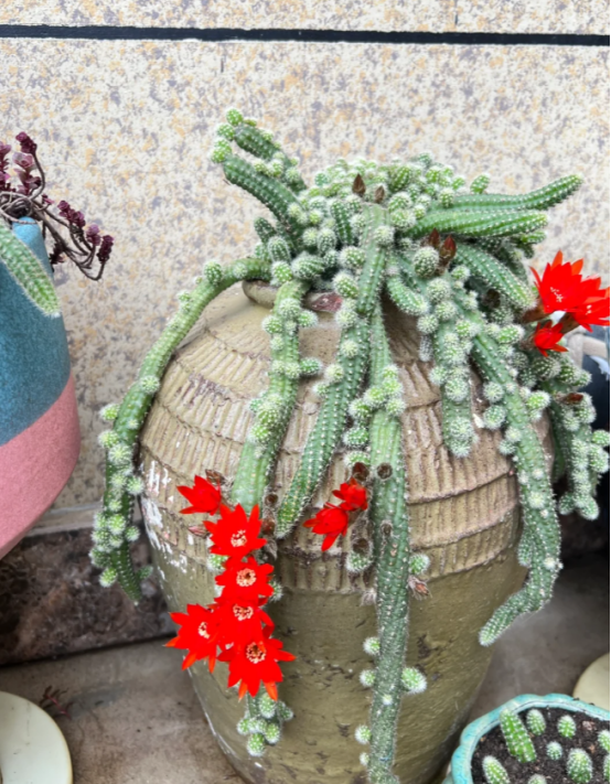 形状像圆滚滚的棒子,既皮实好养活,又能够开出红彤彤的花朵,看着就十分的喜庆和治愈!