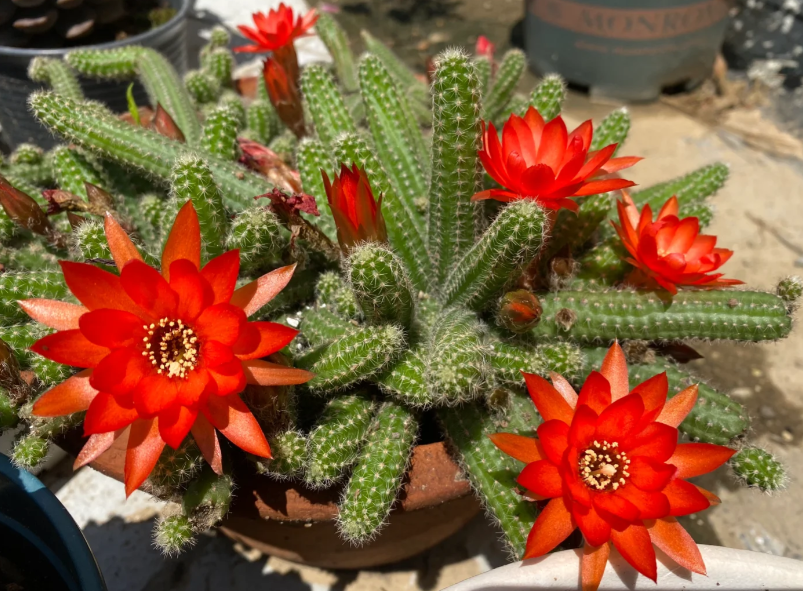 即使如此不管不问,养上一两年,白檀仙人掌会长成一大片,一茬接着一茬的开花,花朵惊艳如昙花,让人一见倾心!