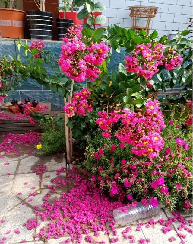 这样只需要沿着花盆边缘埋上几勺子,整个冬天都可以起到保温的作用,还能够为来年紫薇花生长提供营养,让紫薇花开花更多更灿烂。