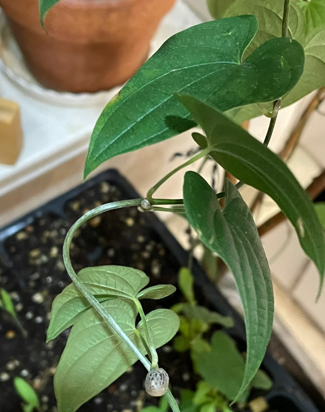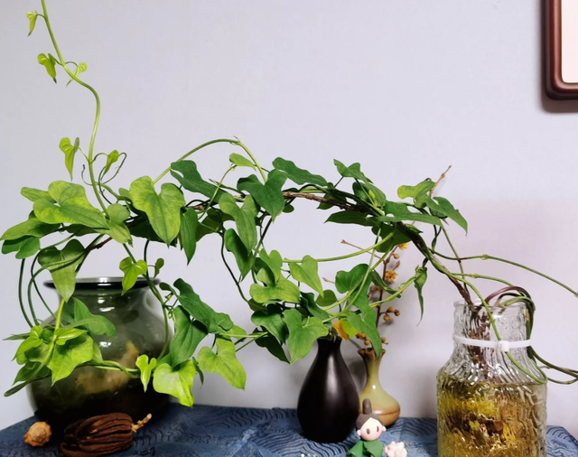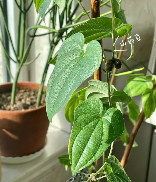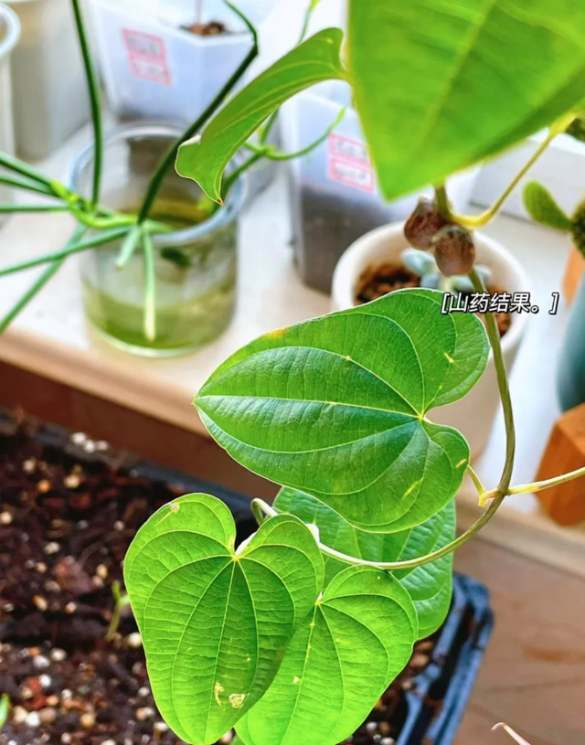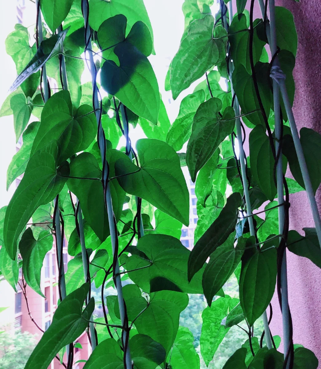 建议大家在山药的漫长到十多厘米高的时候就搭架子或用绳子牵引,这样不仅整体造型会长得更具有观赏价值,同时又能够保证它见到更多的光照,长出更旺盛的叶子,为山药豆做准备。