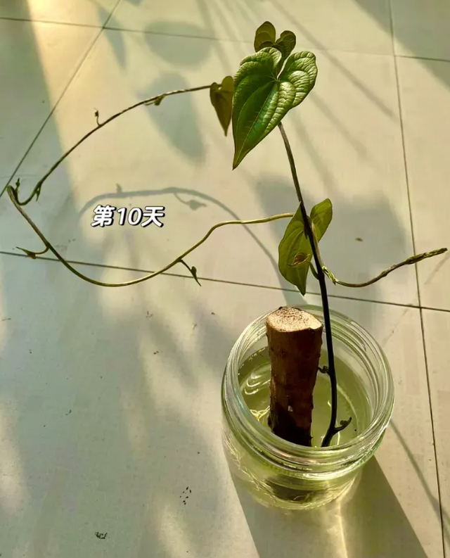 水培的前期,山药没有长出根须,这个时候需要每天都换水,以免水中的微生物引发山药的截面腐烂。