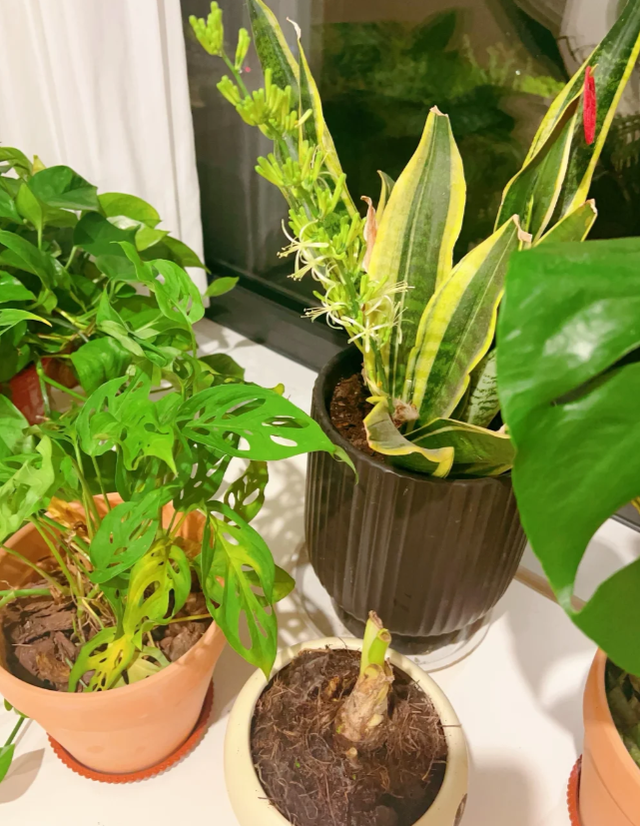 虎皮兰对养分的需求不高,再加上我们每年给盆栽换土的时候,都会往土壤里添加一些肥皂,温和又持久的有机肥。