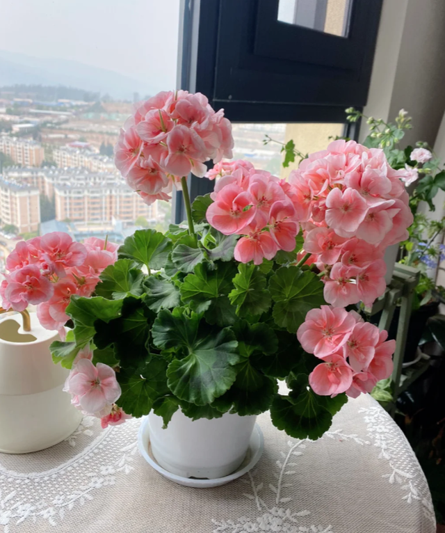 光照:天竺葵是阳光的宠儿,充足的光照能让它茁壮成长,分枝繁茂,花朵也更加艳丽。但夏日烈日炎炎,此时需将它移至散光且通风良好的环境中。