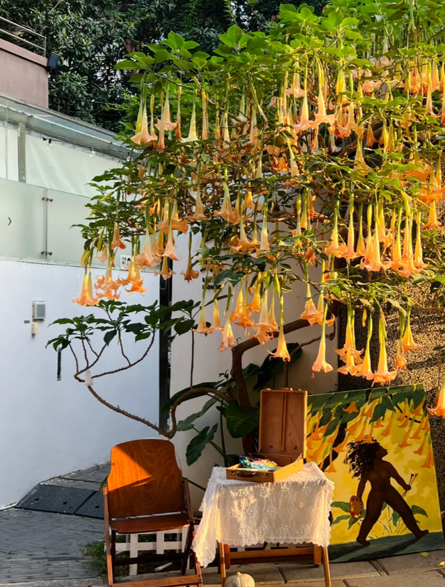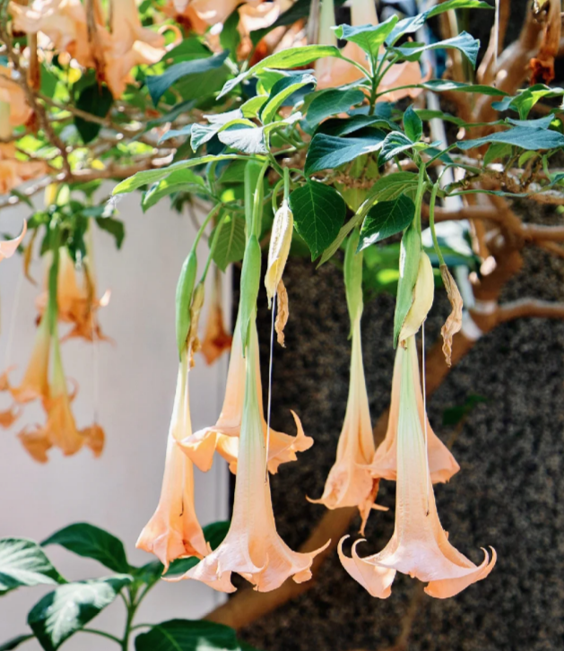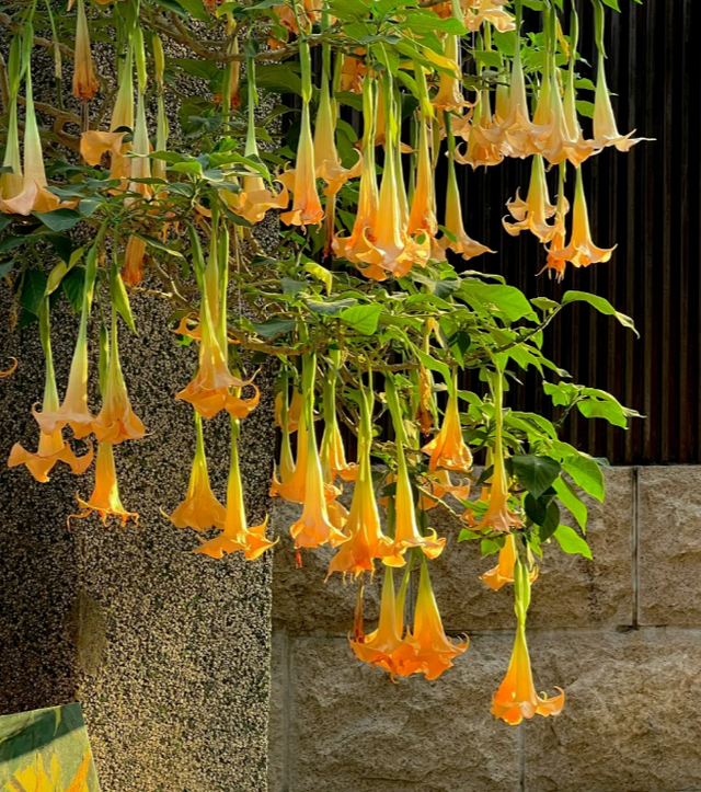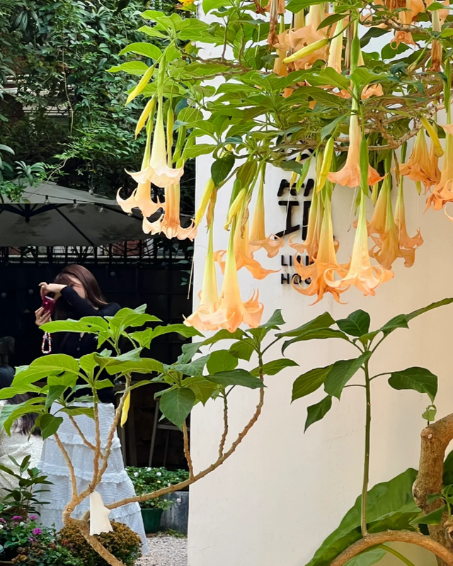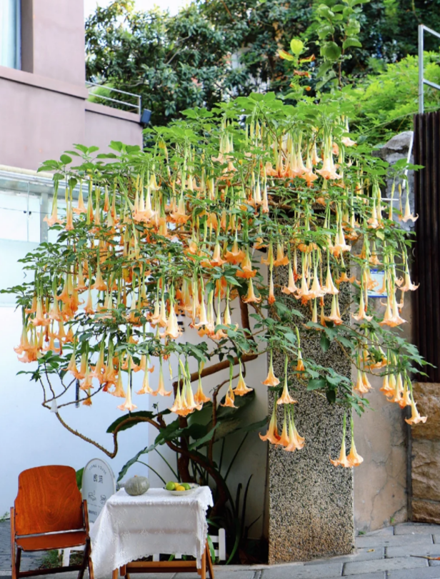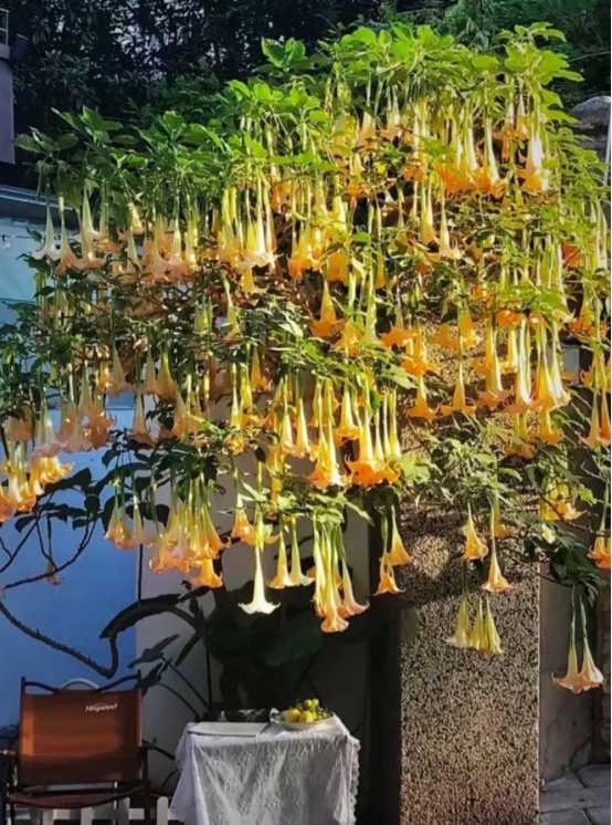 我查了一下相关的资料,就发现这种常见的木本曼陀罗,又名“天使的号角”,开花时每株上可以开出上百朵大花。