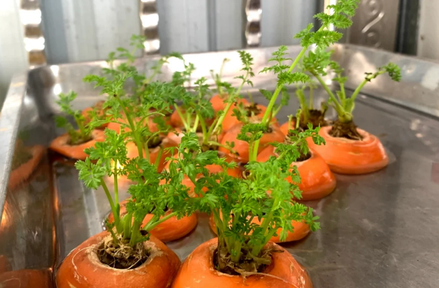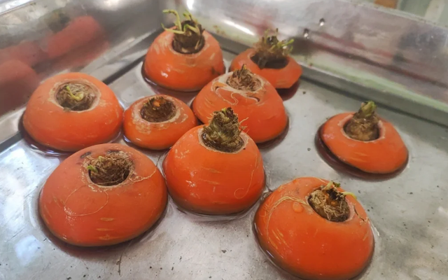 如果你在切胡萝卜的时候,把胡萝卜头切掉多一些,大概高度在2~3cm之间,那就可以拿来水培了。