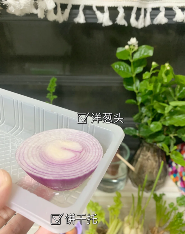 吃不完的洋葱或切掉的洋葱头都可以拿来水培,放在不漏水的容器内水培,间隔两到三天换水一次,它就能够快速的长出洋葱叶!