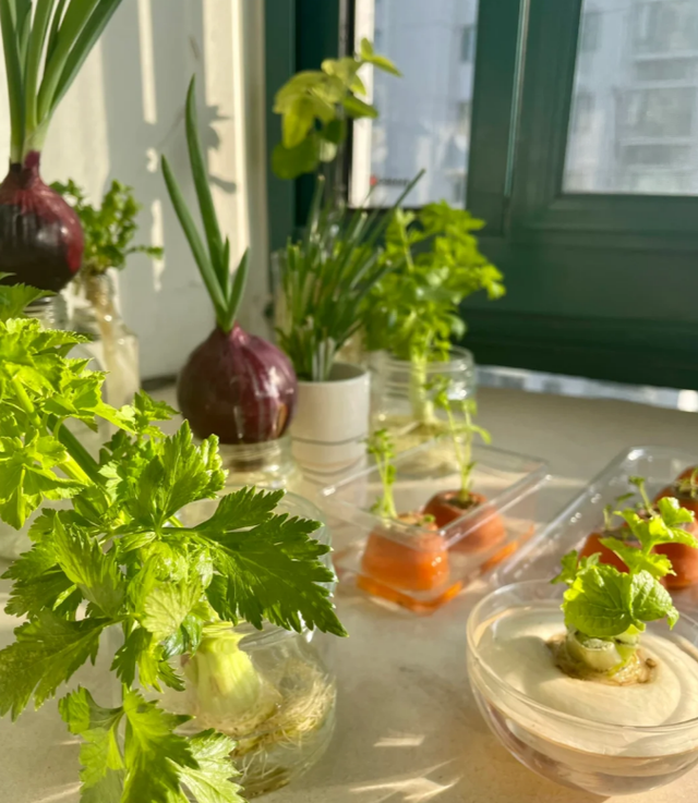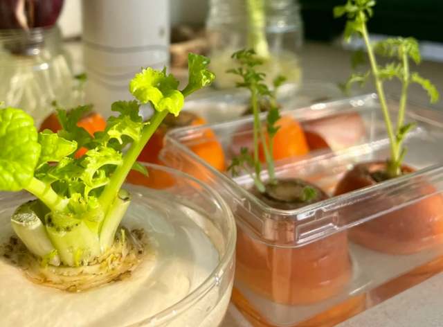 比如下面的这些瓜果蔬菜,不能吃了,大家可以尝试着拿来水培,不用花一分钱,就能收获无数的盆栽,其乐无穷!