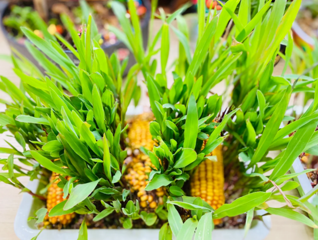 因为不少城里人都只能把不能吃的老玉米扔掉,但她却心血来潮把不能吃的老玉米当绿植养!