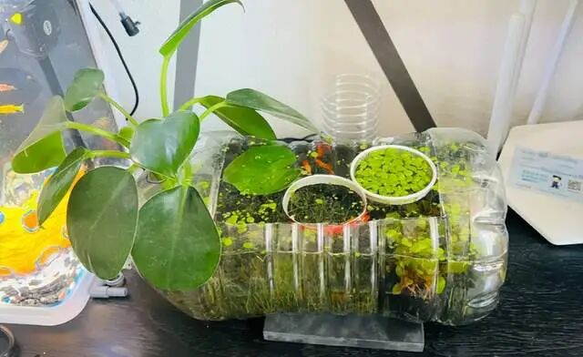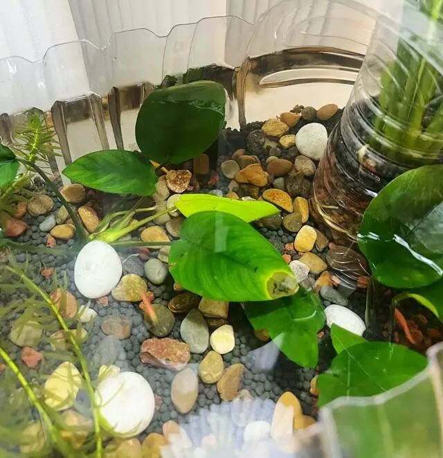 建议大家从自己种植的绿萝、铜钱草、吊兰等中分一部分出来种植在鱼缸内,如果条件允许的话,再种植一些水草。
