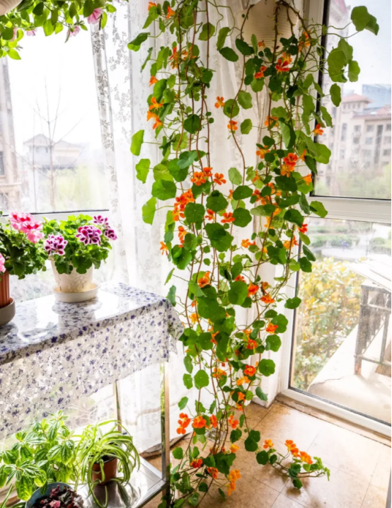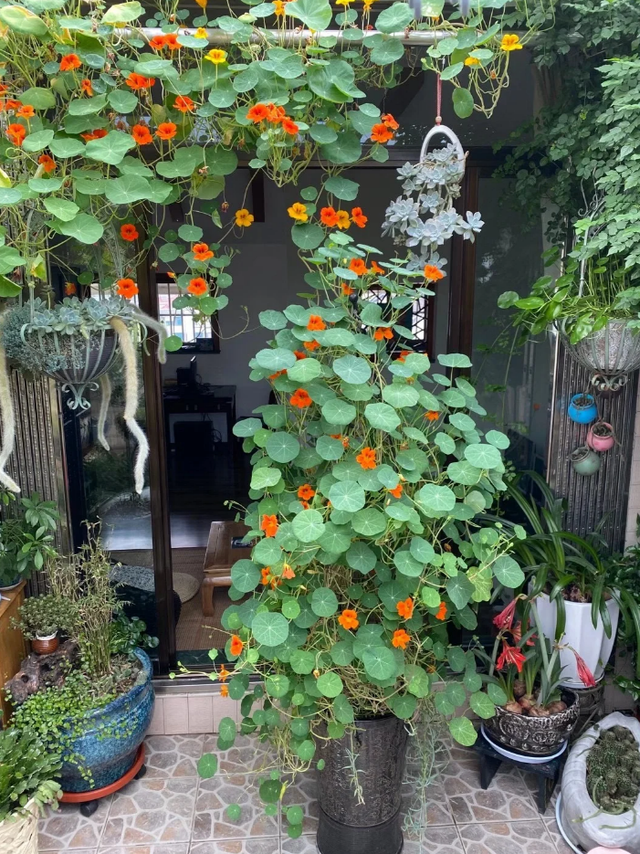 看看!这就是全网爆火的旱金莲客厅,那叫一个壮观,看着就好治愈。