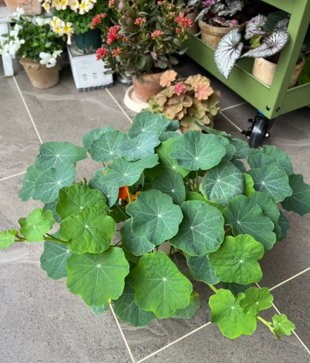 这个品种的旱金莲分枝性比较好,哪怕在盆栽的过程中不打顶,依旧能够长出茂盛的株型,提升盆栽的观赏价值。
