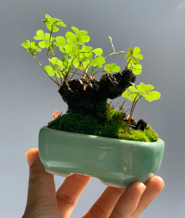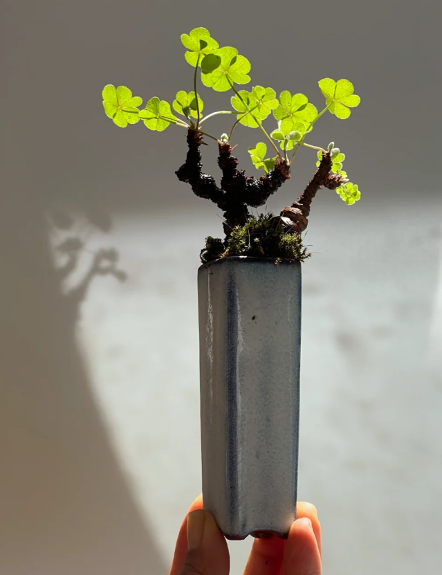 可以根据自己的审美和想象选择气质相合的花盆,让盆景更具有美感,养成的三叶草老桩观赏性更佳。
