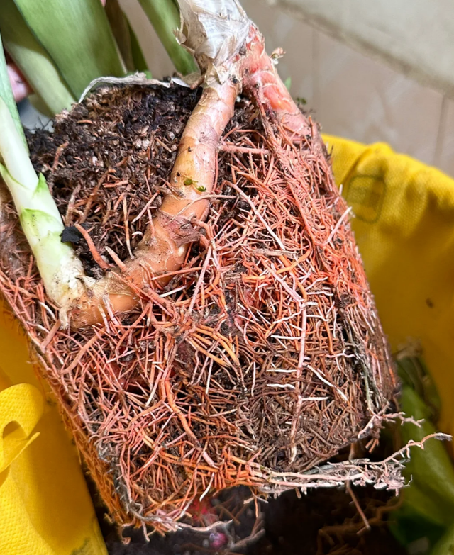 切记,要等到土壤半干时再把虎皮兰从花盆中清理出来,然后梳理干净根部的土壤,修剪掉病变和多余的根须。