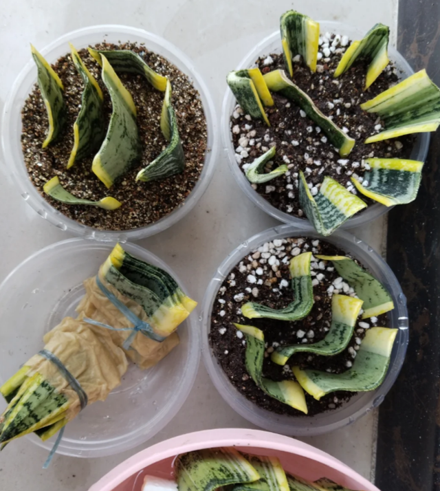 当然,我们也可以在室内半阴或背光的地方,土培虎皮兰的叶子,扦插培育出更多的虎皮兰幼苗。