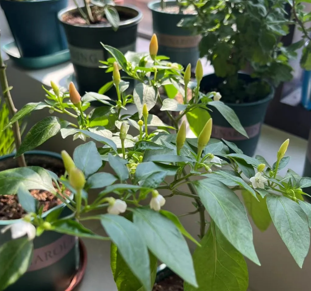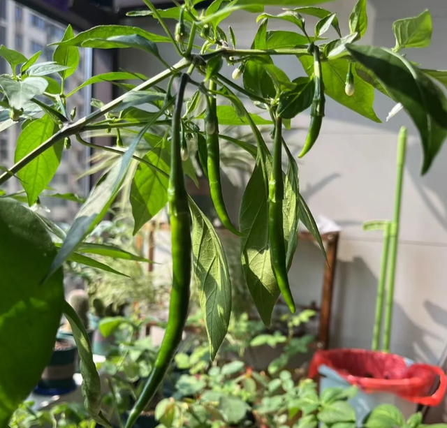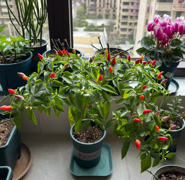 而且种植方法简单,我们只需花几块钱买上几个辣椒苗,然后带回家盆栽在光照充足、通风好的阳台或窗台上。