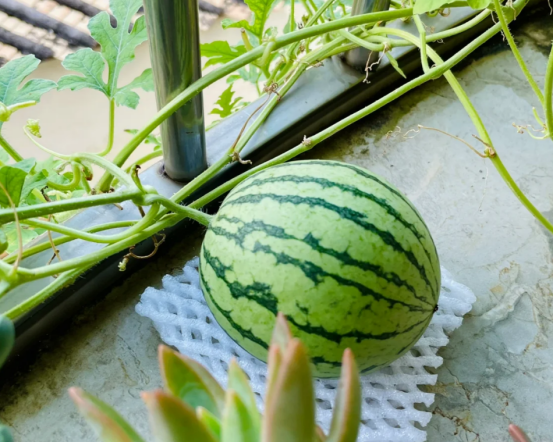 在阳台上种植西瓜难度不像我们想象中的那么大,只要一个小小的花盆就可以种植西瓜。
