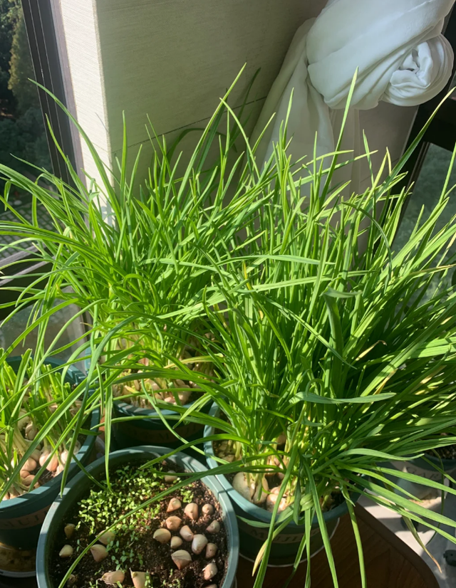 土培不仅可以收获蒜苗,不喜欢吃蒜苗,还可以多种植一段时间,等到蒜苗自然枯黄,就可以收获新蒜了。