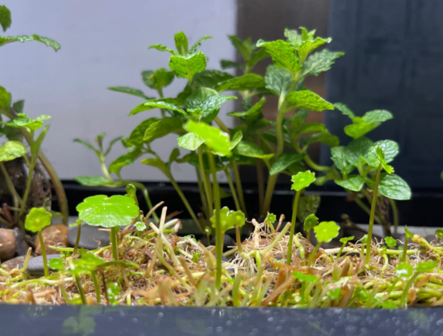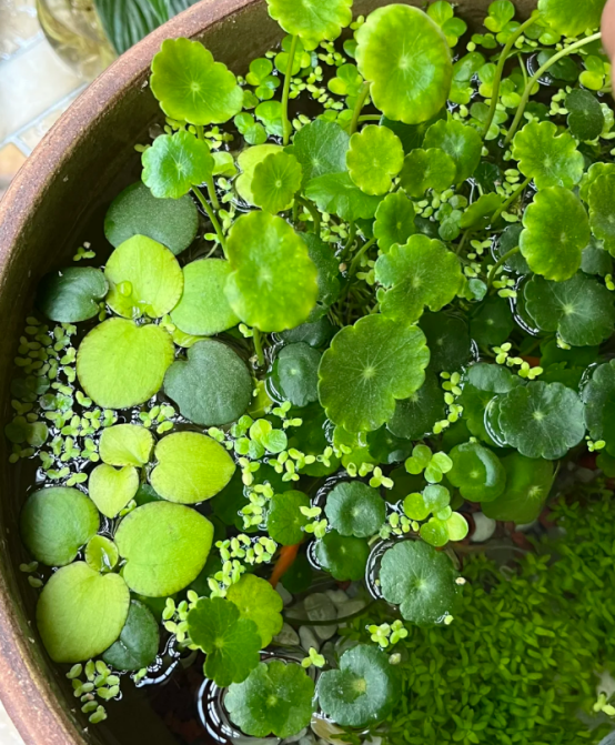 铜钱草比我们想象中的生长的速度更快,因此时不时的就有铜钱草的枝叶会长出水面。