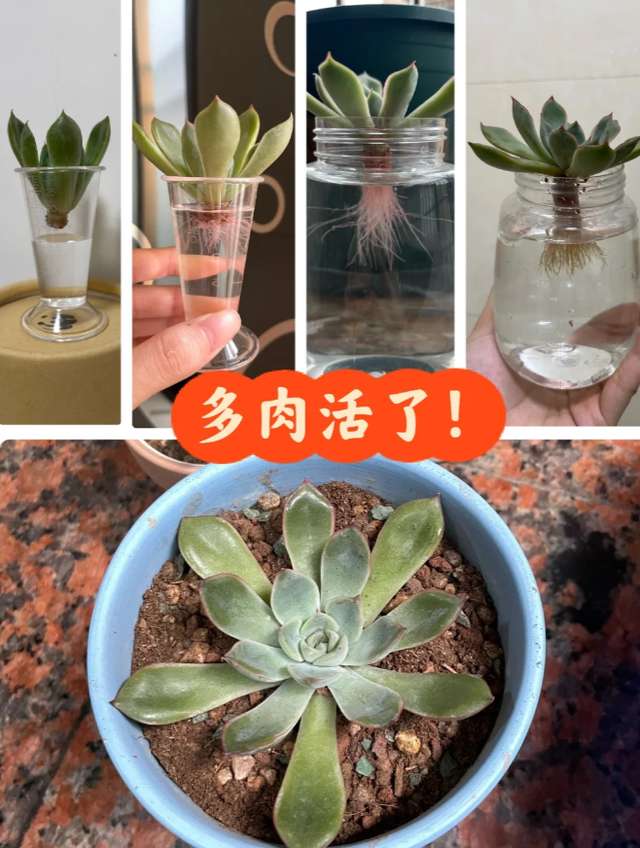 把多肉植物的叶子或枝干简单的处理一下,放在装满水的容器中,保持一定的距离,这样就可以利用水蒸腾形成的高湿环境促进多肉的枝叶生根发芽。