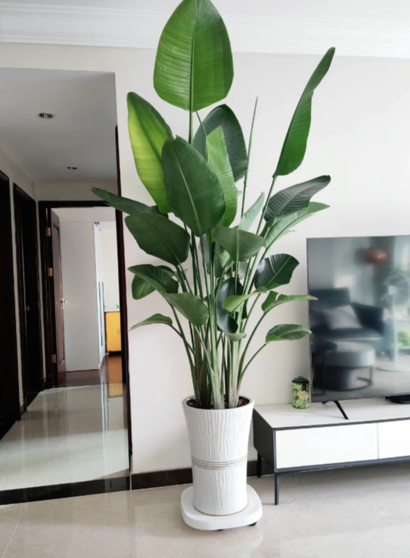 这样一直放在光照充足,通风良好的地方,天堂鸟就能够健康成长开花。