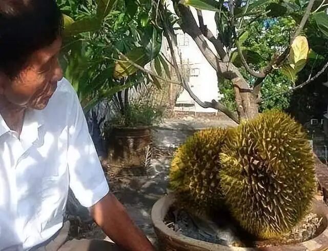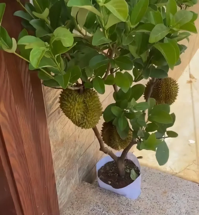 现在终于有人,把“榴莲核”养成榴莲树,盆栽1米高,果子重“20斤”!