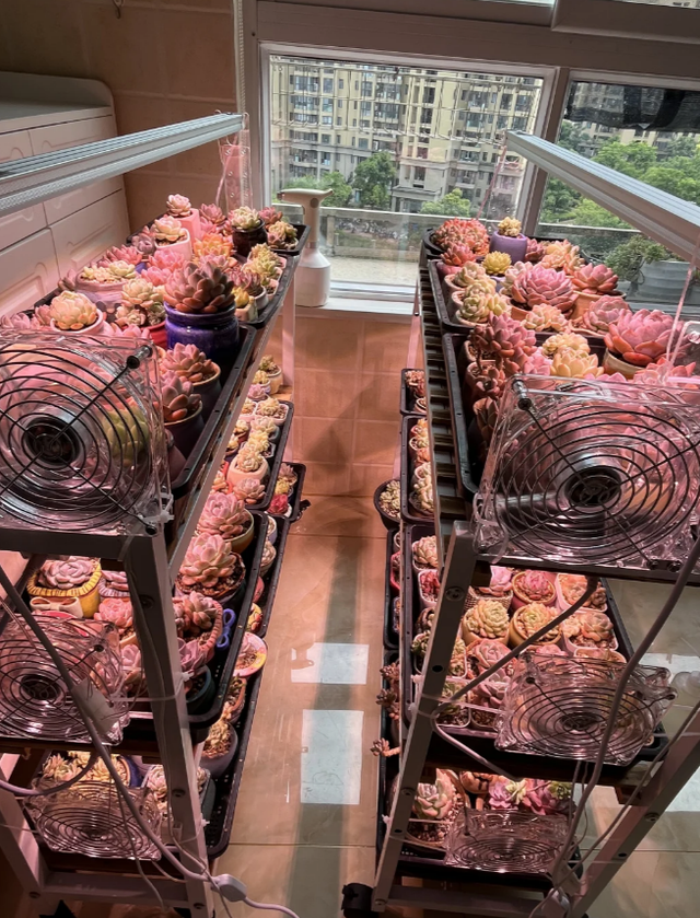 亦或者在空调房内使用风扇,定时的开启空调净化空气模式……,减少多肉患上病虫害的几率。