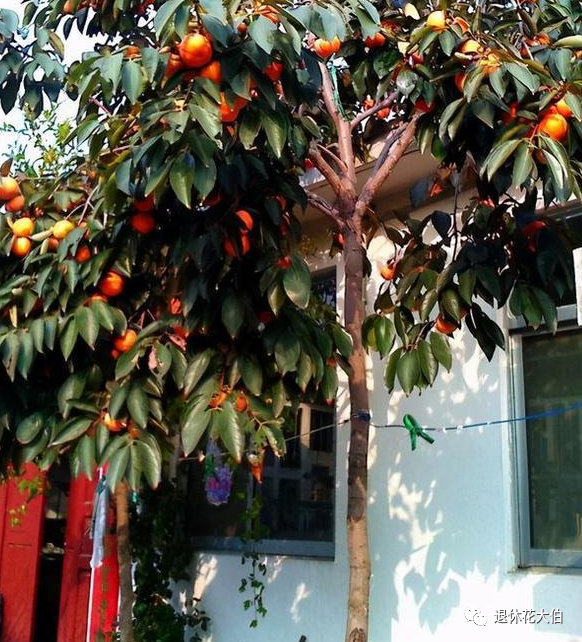 在庭院里种植柿子树非常的好,不仅是因为红彤彤的果实挂在枝头,给人一种喜庆和生机勃勃的视觉享受,同时也是因为这种果实象征着事事如意、子孙有福气!