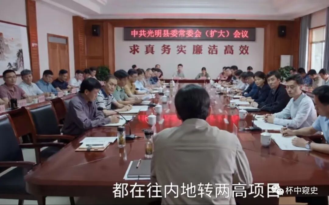 首先来看光明县,梅晓歌在传达市政府关于招商的会议精神时说(删除非重要部分):“市里面下达的文件,我们一定要研究透彻,尤其是新的政策,新的补充。看看有哪些是对我们有利的,这就和考试一样,高考前为什么要划重点,你只有吃透了,才可以拿分……今天还有一个事,有些企业在我们这儿享受完政策转身就走了,一分钟都不多留,我们要研究这个事情,改政策,想办法把他们留下……招商是大事,但是不能着急,所有的项目要看清楚,必须要实事求是。最近沿海有不少的两高企业都在往内地转两高项目,如果有找上门的,不要轻易表态,做不到就不要忽悠,稳扎稳打,把招商当做是我们近期非常非常重要的项目来抓”。