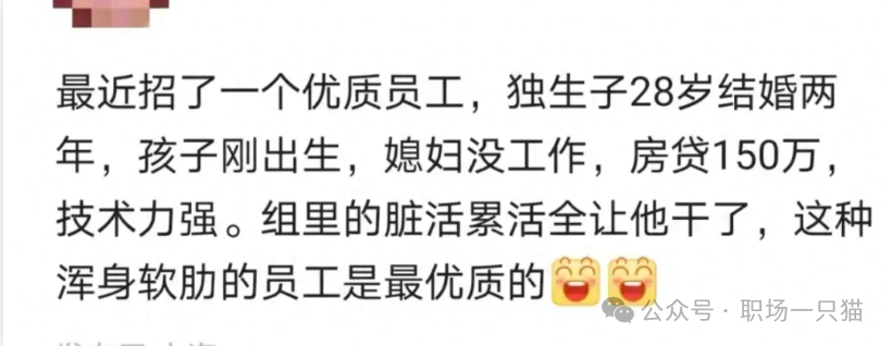 不要大声骂年轻人,他们会辞职的;但是你可以往死里骂那些中年人,尤其是有房有车有娃的那些……