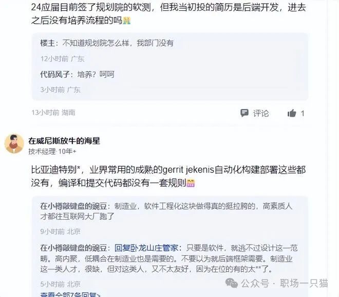 还有网友表示,比亚迪的社招情况似乎更加离谱,尽管大家的学历起点相似,但在其他新势力公司工作两年后回到比亚迪,却面临着降薪的现实。