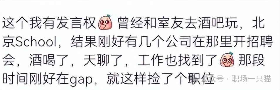 网友3:“酒”后有惊喜:前同事在 School 酒吧找到了工作。